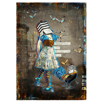 The art world of Rosie Augustine is fueled by an obsession to depict stories in visible form and a fascination with reality connecting with fantasy. She works in a variety of media, blending and fusing elements from her imagination through the power of pixels. Her process is elusive to explain yet compelling to view.